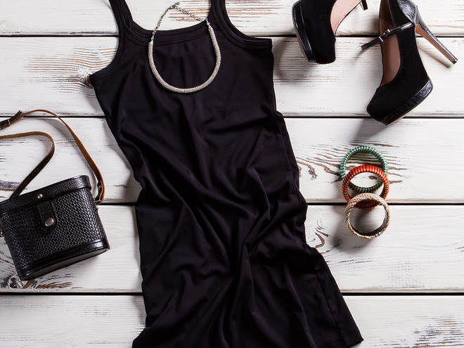 Vestito corto ELEGANT BLACK. Modello corto. Spalline sottili.